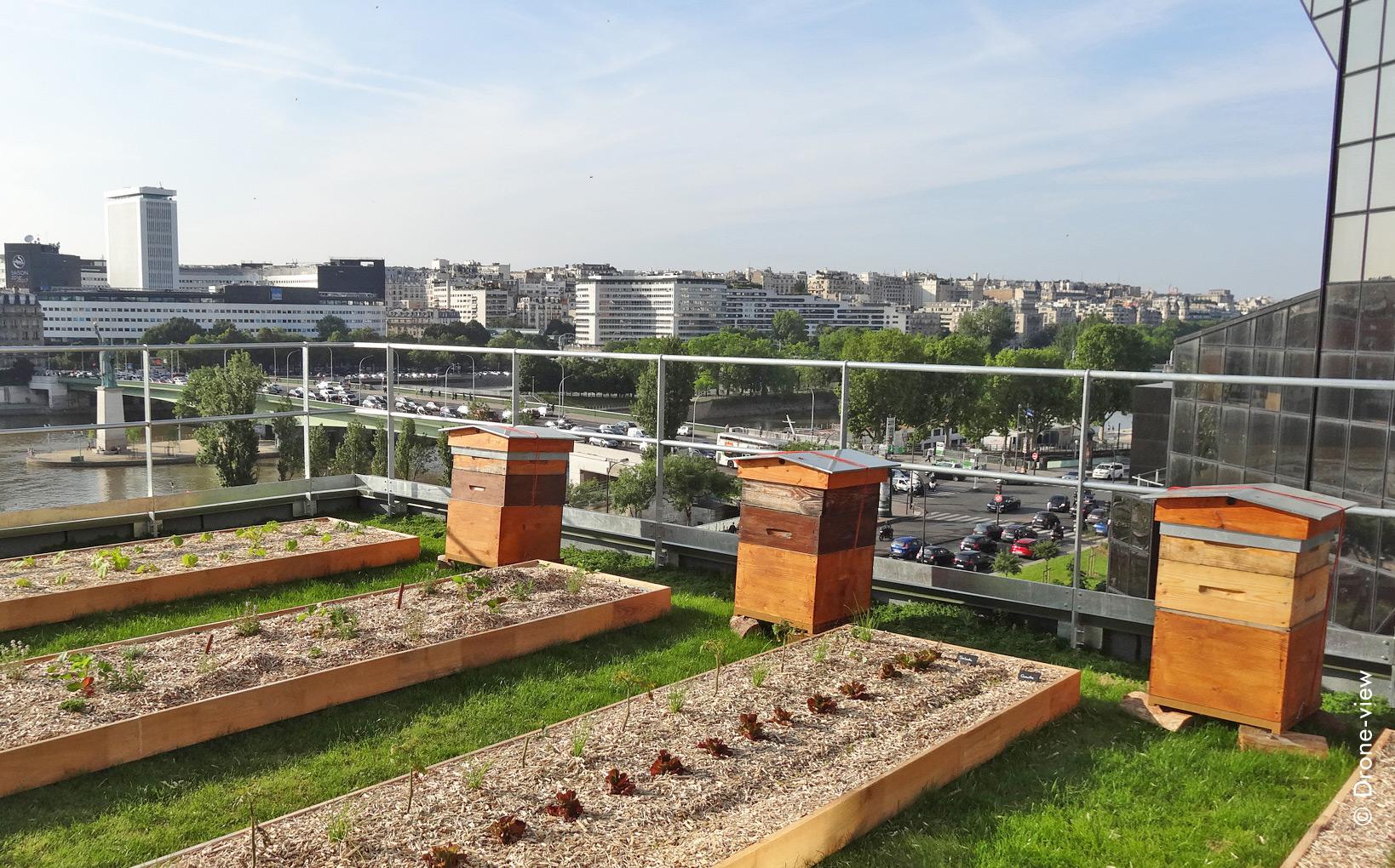 屋頂上的蜂箱確保農作物授粉。圖取自ZINCO官網