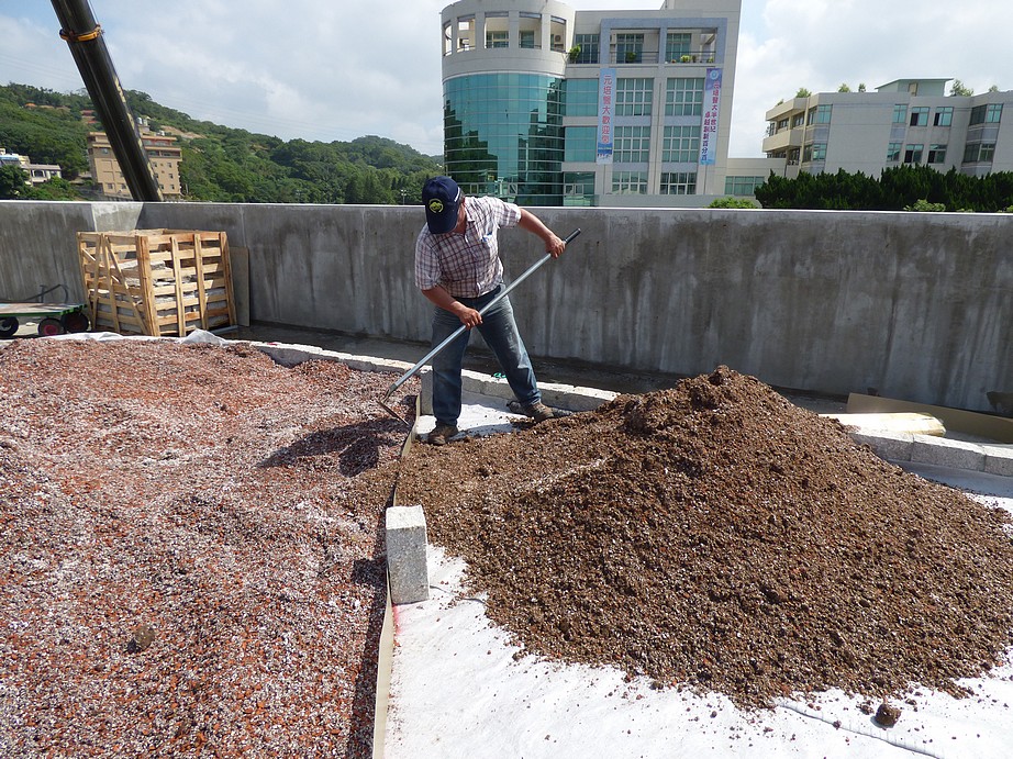 實施立體綠化,覆土時,特別需要考量飽含水份的土壤介質,會不會造成建築結構承載負擔?若以一般花土比重1.5為例,若遇瞬間豪大雨,飽含水份後的比重為2.25,吸飽水份後的介質重量約為337.5kg/m2,恐怕已超過一般屋頂載重限制。相較綠屋頂専用的植生輕質土,v質輕、v透氣、v排水佳,専為綠屋頂載重輕量、樹穴生長、耐夯實等需求而調配的配方土,因為植生輕質土比重較輕,既使飽含水份後,也不致造成屋頂承載結構負擔。