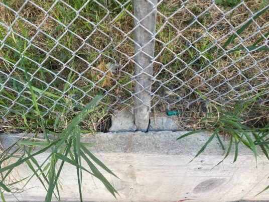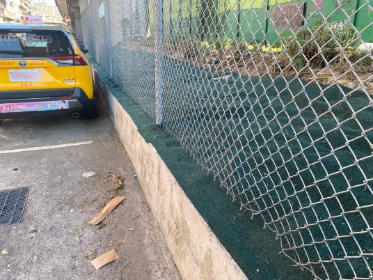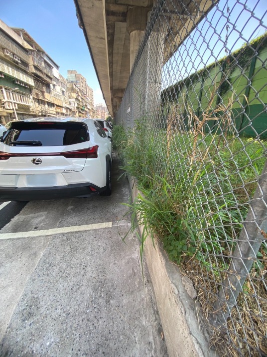 施工前:緊臨停車場外的強勢雜草,已經蔓延出鐵網外,人車經過,容易被割傷。