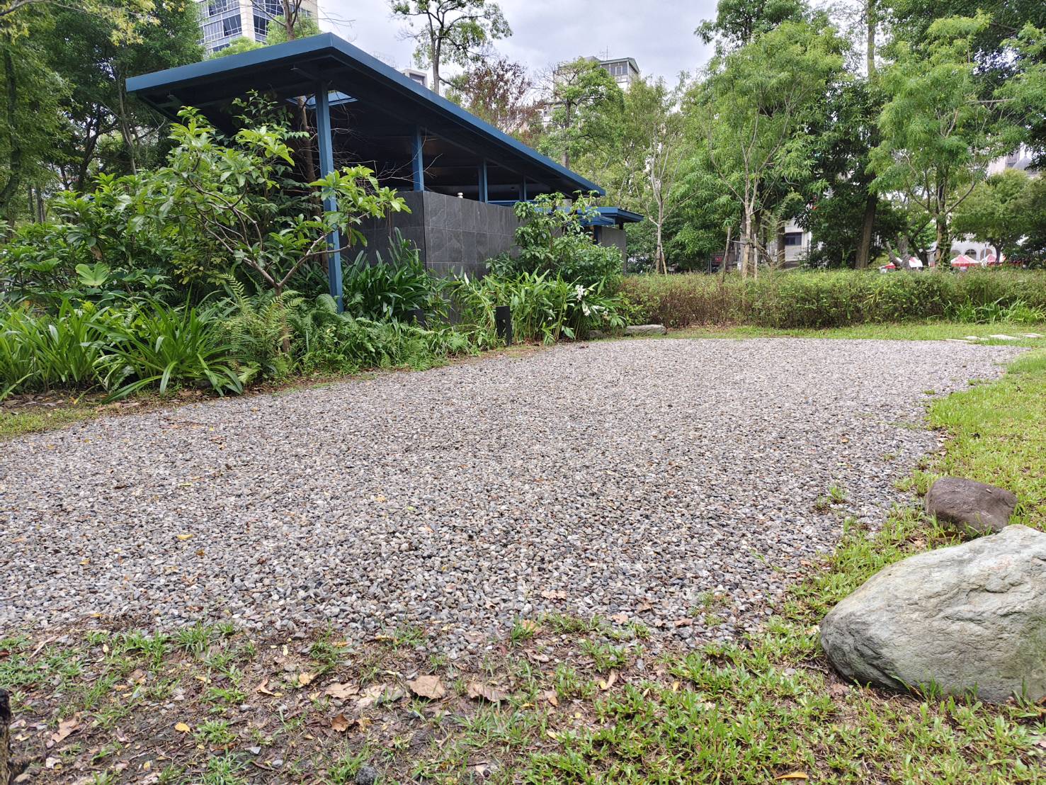 大安森林公園生態公廁旁,礫石鋪面下設置保綠雨水箱,蓄水量可容納150公噸,非旦不再積水,還可以活化周邊生態池。