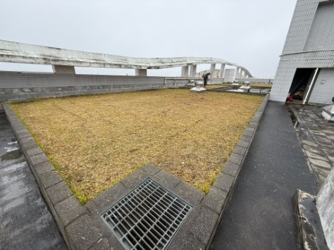 林口社區住宅屋頂花台雜草長得快,經常需要除草,草屑容易噴濺,阻塞排水通道,非常果擾。