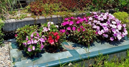成大魔法學校綠屋頂鋪設彩植兼美,裁切植穴種植植栽,三個月後植株生機盎然,周邊沒有雜草竄出。