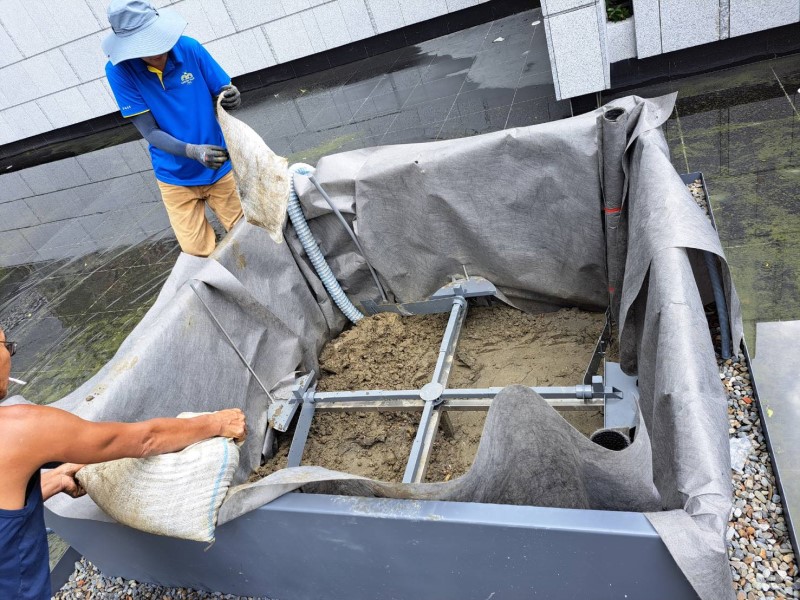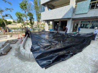 將晶曜石鋪設於花台樹穴底層,加強空氣排水,達到空氣斷根作用,避免竄根破壞樓板,或阻塞排水孔。搭配植生導根板,優化樹穴環境,增加空氣流通。