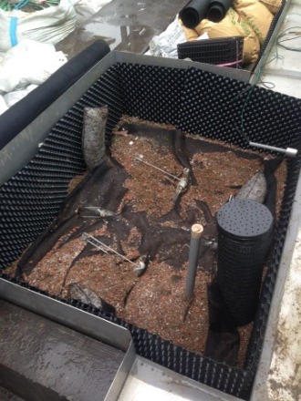 確認完成結構防水、防竄根等結構保護後,可以將磐地支架安裝於結構墩座上,再將支撐鉚釘板固定於側壁,覆土後,將樹木根球吊入,利用磐地支架穩固根球後充份澆水即可安裝完成。有了磐地支架穩固樹木根球,即使高樓遇強風吹襲,樹木依然穩健生長。