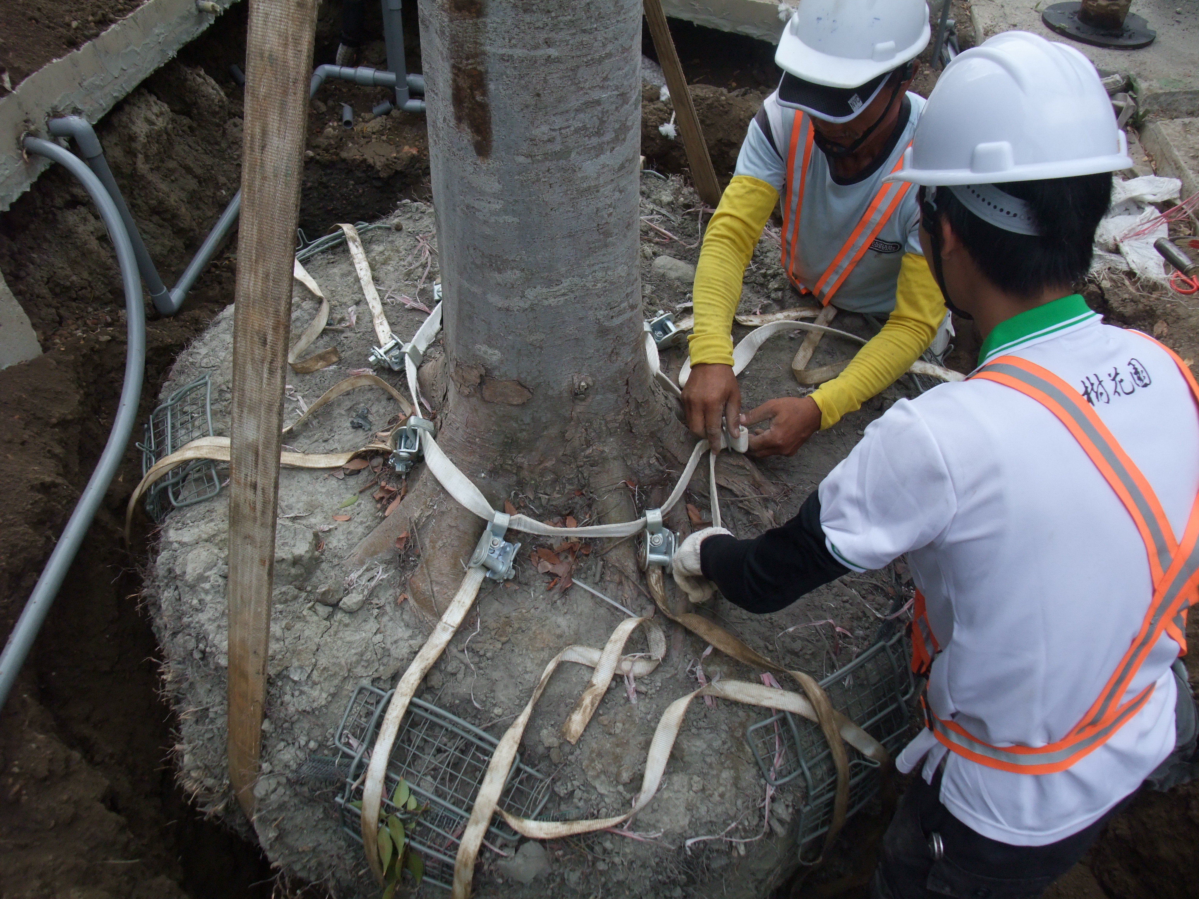 幫樹木搬家,特別是從原土層移植到高層,是攸關生命存續的大事,從半年前開始假植養根,培養大量新生根系萌發,才能確保移植到高樓層後,充份吸收水份和養分,增加存活率。
