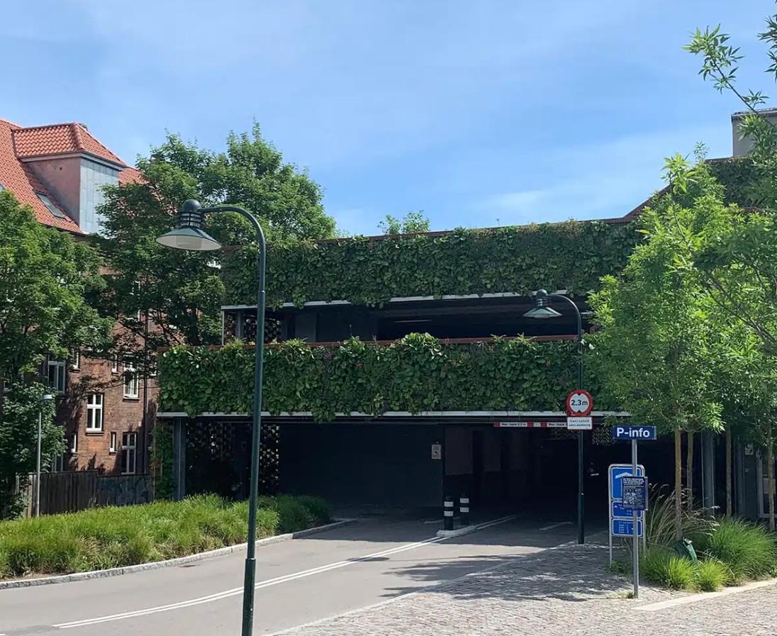 位於丹麥羅斯基勒一個歷史悠久的城鎮,當地市政府委外設計了一座10層樓高的停車場,足足可以容納500個停車位。磚紅色的外牆,搭配SemperGreenwall鬱鬱蒼蒼的綠牆,形成鮮明的對比,備受矚目。沿著戶外樓梯拾級而上,感受輕風吹拂,植物也跟著搖曳生姿,添加了舒適感。